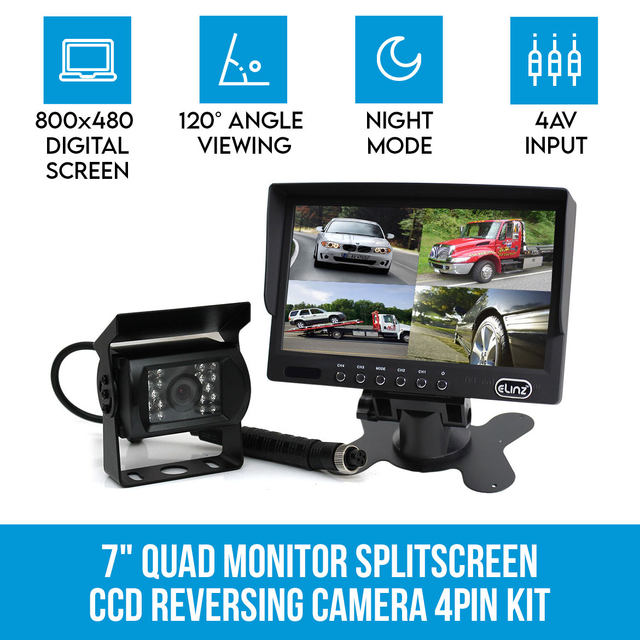 Elinz 7" Monitor HD 12V 24V CCD 4PIN Reversing Camera Truck Caravan 3 AV inputs 600TVL