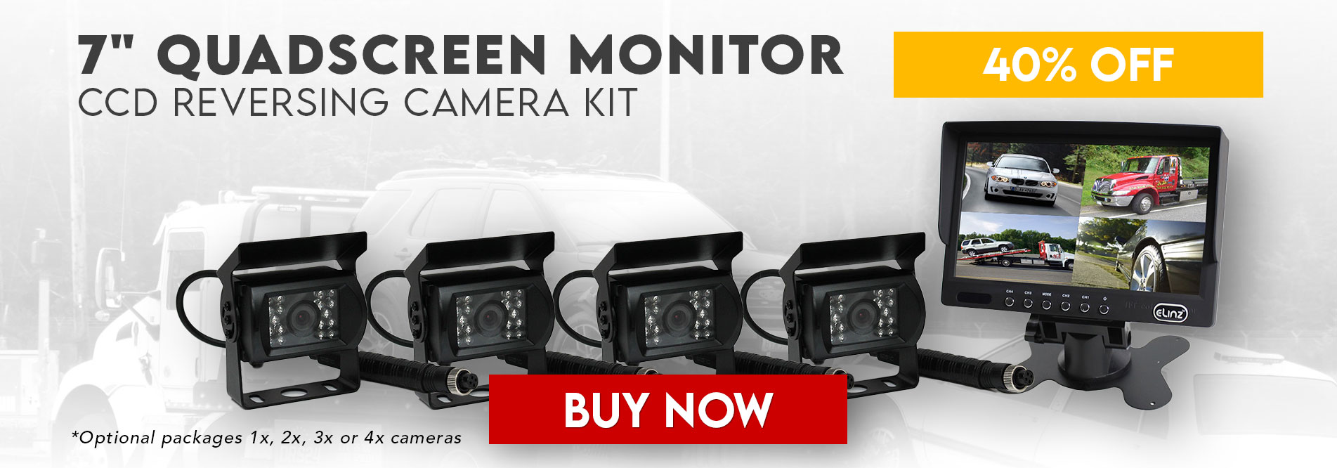 Elinz 7" Quad Monitor Splitscreen CCD Reversing Camera 4PIN Kit Truck Caravan