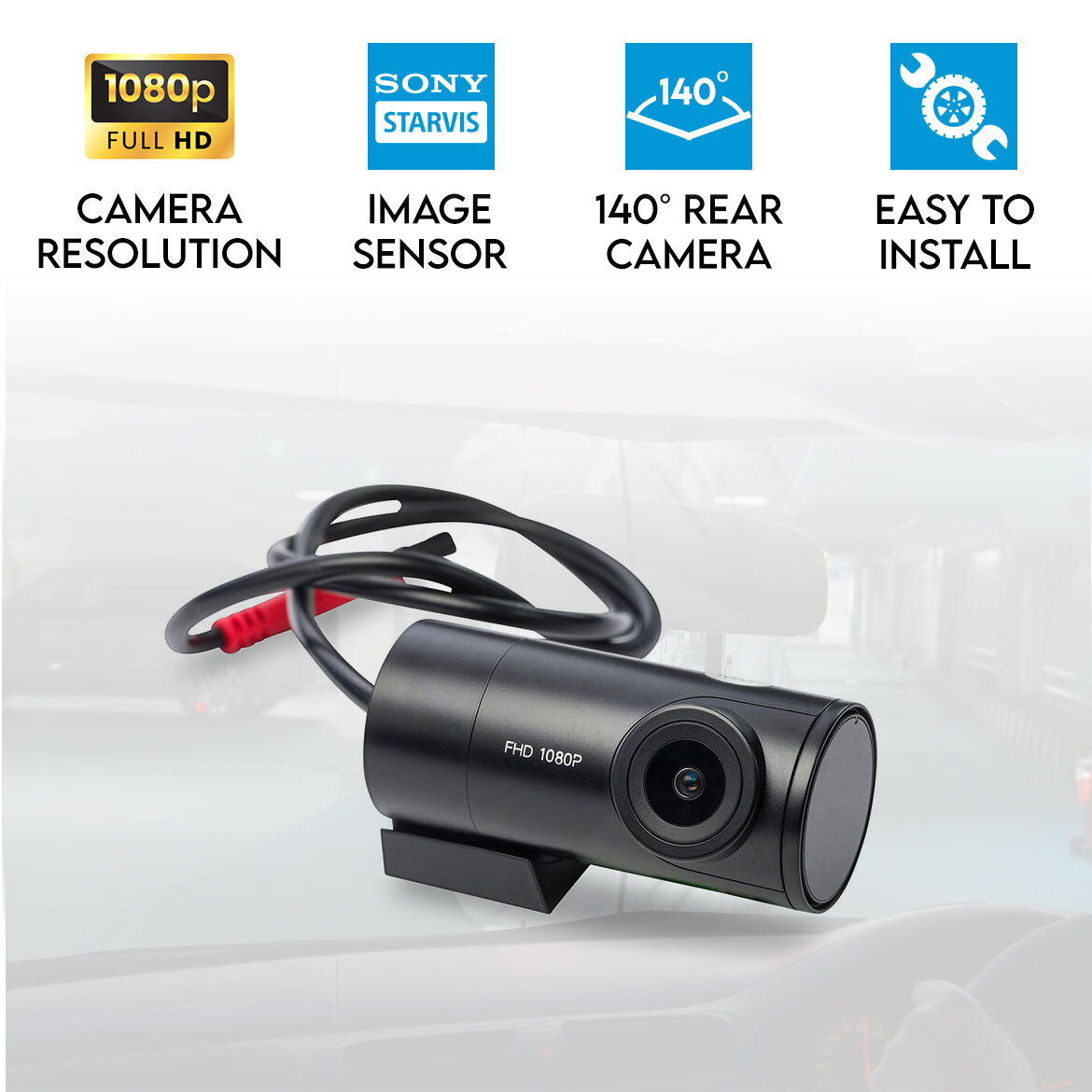 Introducing our rear camera with 1080P resolution, featuring a 1920x1080P display for a clear rear view and readable license plate capture. Equipped with a Sony Starvis sensor, it ensures clearer footage even in low-light conditions, enhancing nighttime clarity. With a 140° wide-angle lens, safer reversing, parking, and backing up are guaranteed. Easy to install with 3M adhesive pads, no drilling required. Compatible with DCMOB, DCREAR, or DCMAX Dash Cameras for seamless integration.