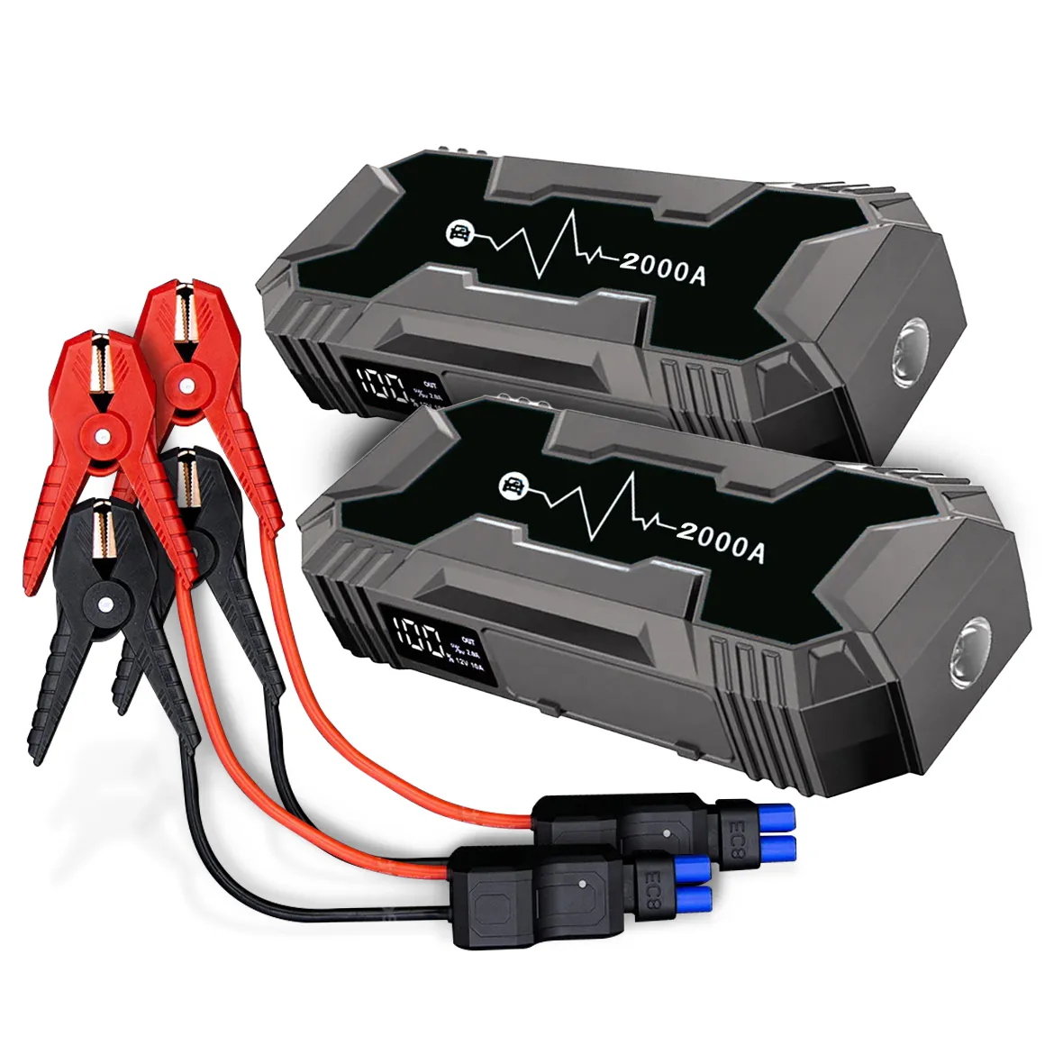 2000A peak current is capable of starting 12V battery vehicles upto 8.0L gas or 6.0L diesel.