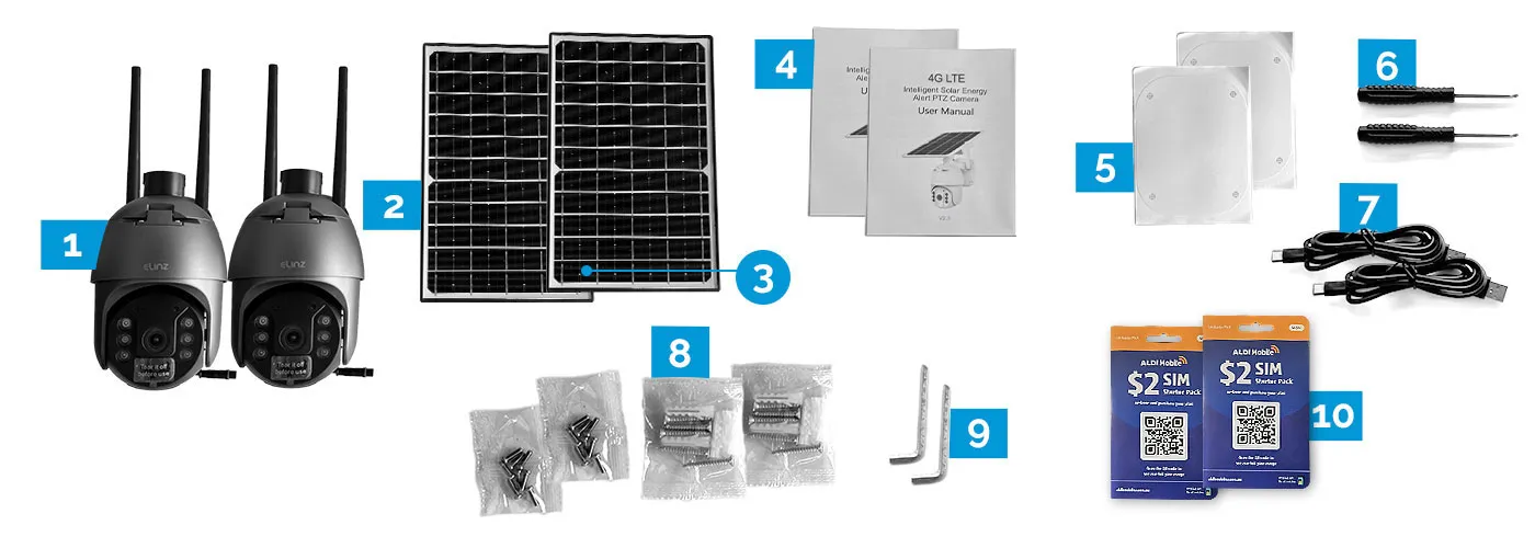 The 4G LTE Cellular Security Camera operates in areas without WiFi, offering flexibility across Australia with 4G LTE coverage. Featuring 2K video resolution, Pan Tilt Zoom functionality, and 8W solar panel power, it ensures clear visuals, remote control, and uninterrupted surveillance. With motion detection, two-way audio, weatherproof design, and wire-free installation, the camera provides comprehensive security, supports local and cloud storage options, and is compatible with ALDI Sim.
