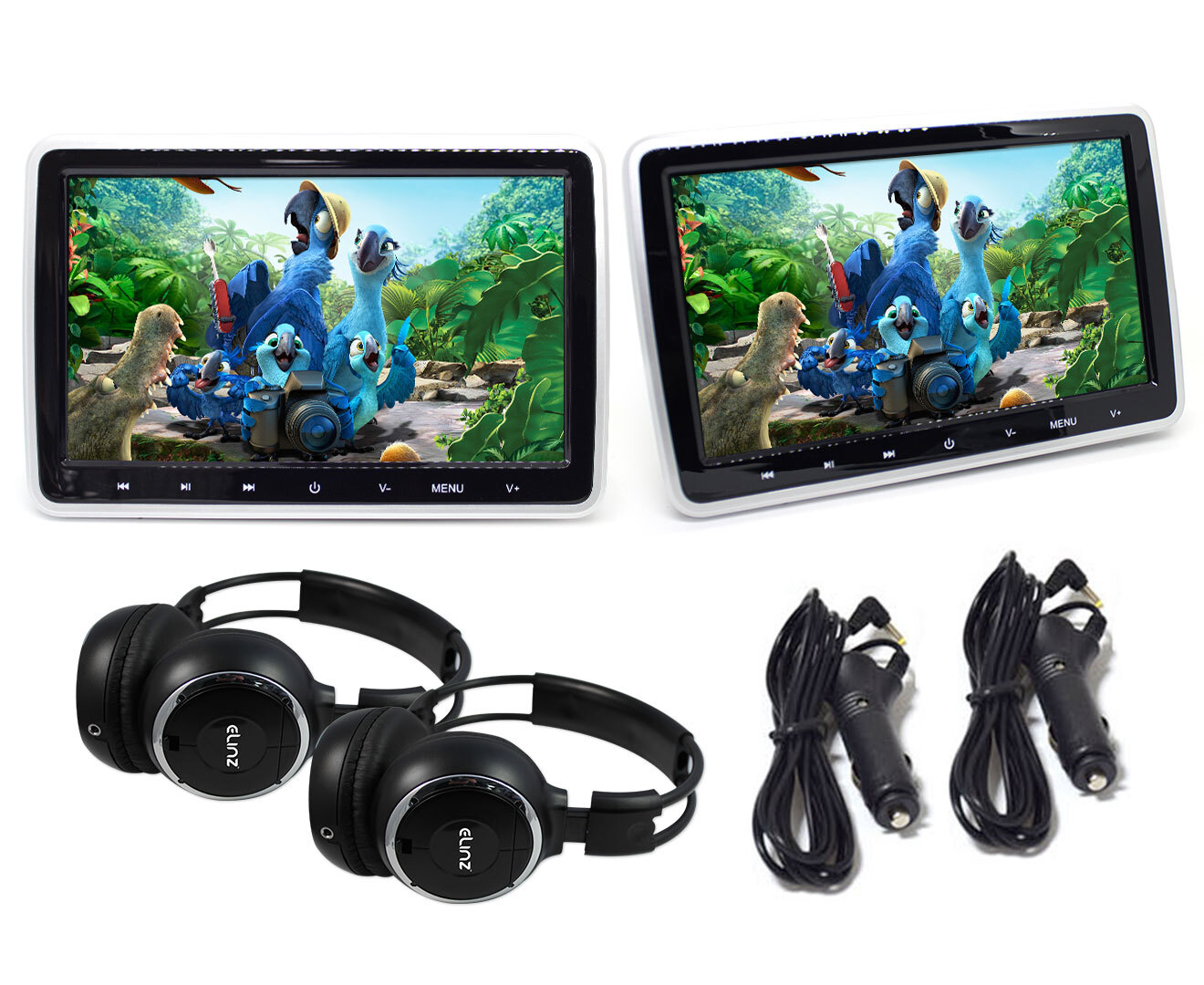 Elinz 2x 11.6" Active Car Headrest DVD Player HDMI GAME 1920*1080P IR FM SD USB 9"