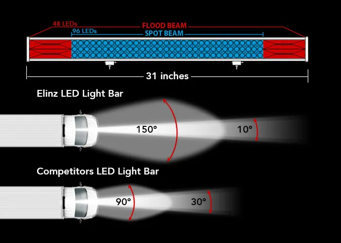 Featured in this product, is the waterproof rating of IP68 which allows this light bar to work effectively during heavy rainfall. With a lumen output of 71640, you will receive the highest quality lighting giving you great visibility without causing eye fatigue. This light bar is proven to outperform other light bars which costs more and will be efficient for long term use.