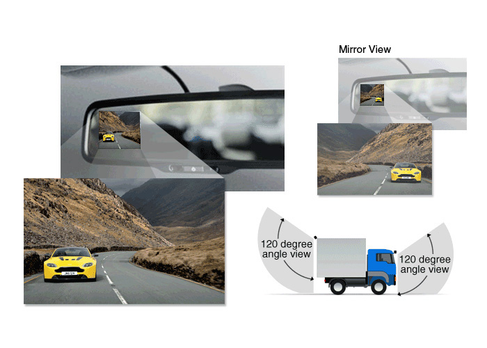 - This new line of reversing camera features a 120-degree viewing angle so it does not produce fish-eye view. When you look at the images being displayed on the monitor, it is as if you're looking at the images being reflected on your vehicle's rear view mirror.