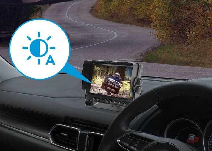 5" TFT Monitor with 800x480 High Resolution that is suitable for 12V/24V vehicles. The monitor can be used with 4PIN cameras and have 2 AV inputs, so 2 cameras can be connected at the same time. It comes with reversing camera with built-in microphone for easy communication.