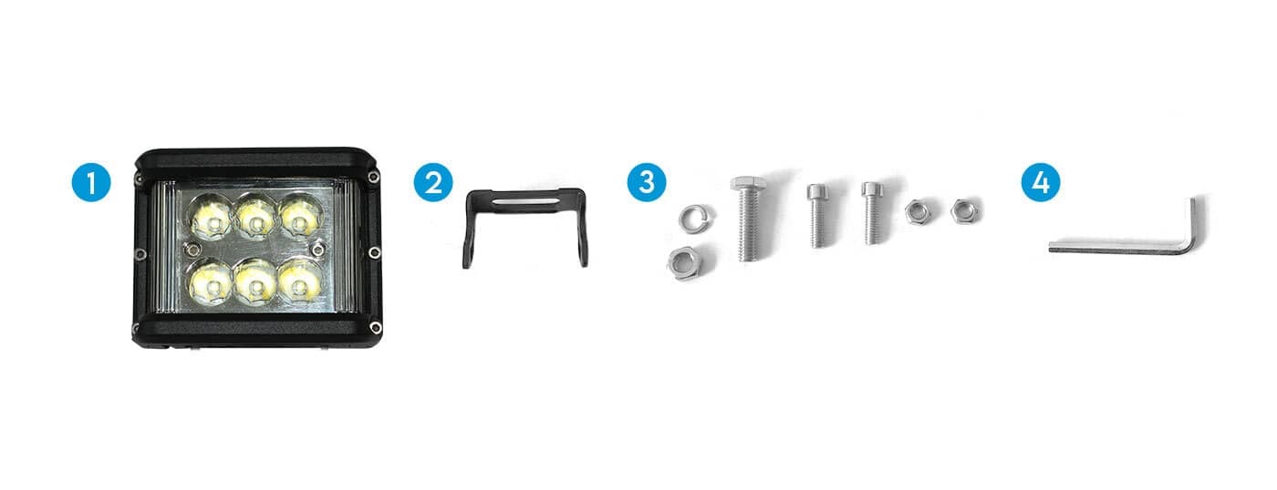 This LED driving work light consist of 12pcs high intensity LEDS which is 6 at the center and 3 in each side. This driving light has flood and spot beam wherein Flood is 120 degree then Spot is 30 degree and colour temperature of white 6000K-6500K.
