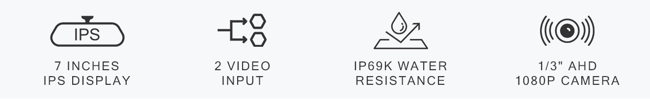 The Elinz K Series 7" Replacement Mirror AHD Monitor delivers crisp, vibrant visuals with its IPS display, high resolution, and reliable anti-interference design. Built for seamless compatibility with Elinz K Series cameras, it offers dual-view functionality, wide voltage support, and user-friendly controls for dependable performance in any driving condition.