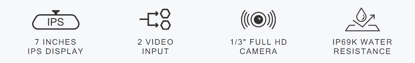 The Elinz K Series 7" Replacement Mirror AHD Monitor delivers crisp, vibrant visuals with its IPS display, high resolution, and reliable anti-interference design. Built for seamless compatibility with Elinz K Series cameras, it offers dual-view functionality, wide voltage support, and user-friendly controls for dependable performance in any driving condition.