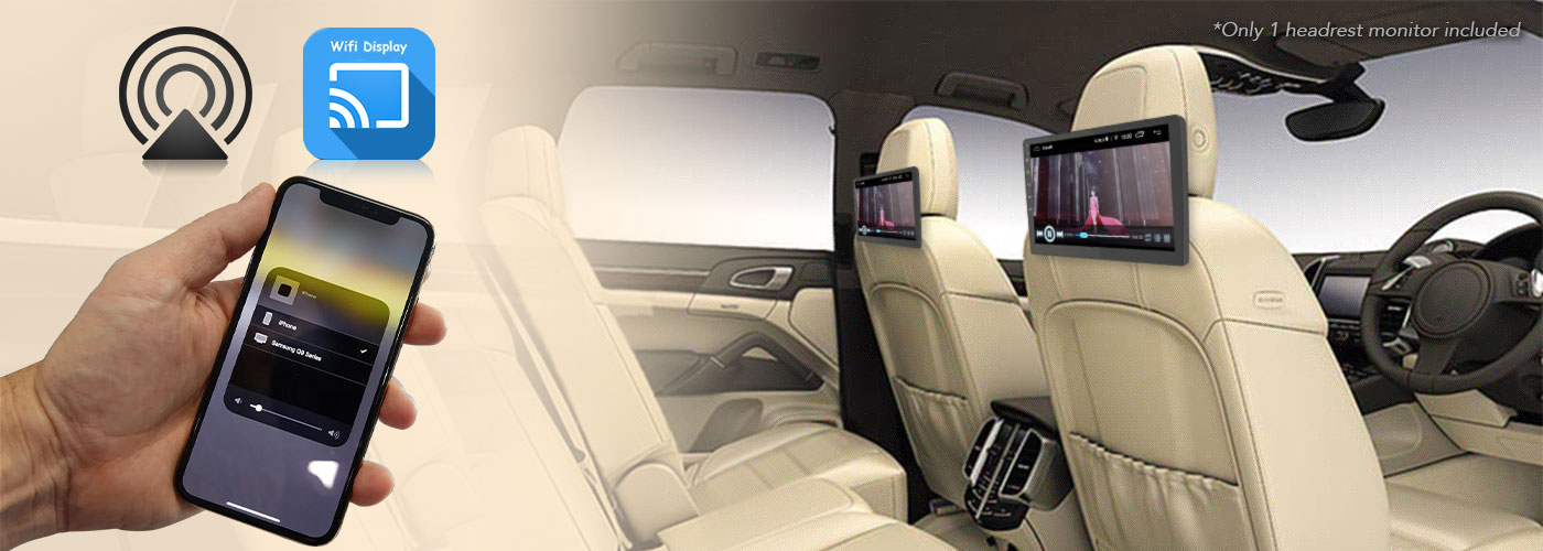 This touch screen headrest use Android 8.1 Operating system which gives you a smoother and wonderful user experience. This Android Active headrest monitor can easily connect to WiFi or hotspots in your car or phone so your kids can watch Youtube, Play games, Download apps from Google Play, check email, chat on Facebook, surf the web, and much more. It supports Airplay and Miracast in which you can run downloaded movies or share all resource in your phone with this active headrest.