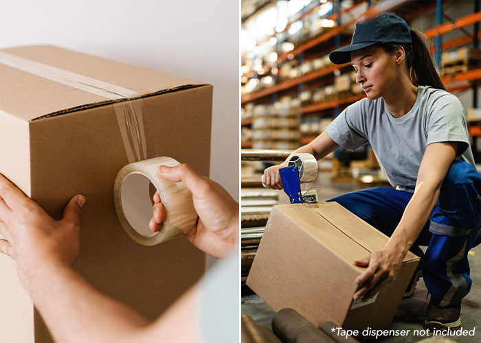 • Our adhesive tapes are made from 50µ Micron BOPP material and quality adhesive, which provides high strength and adhesion ensuring your packages and cartons remain sealed during transit.