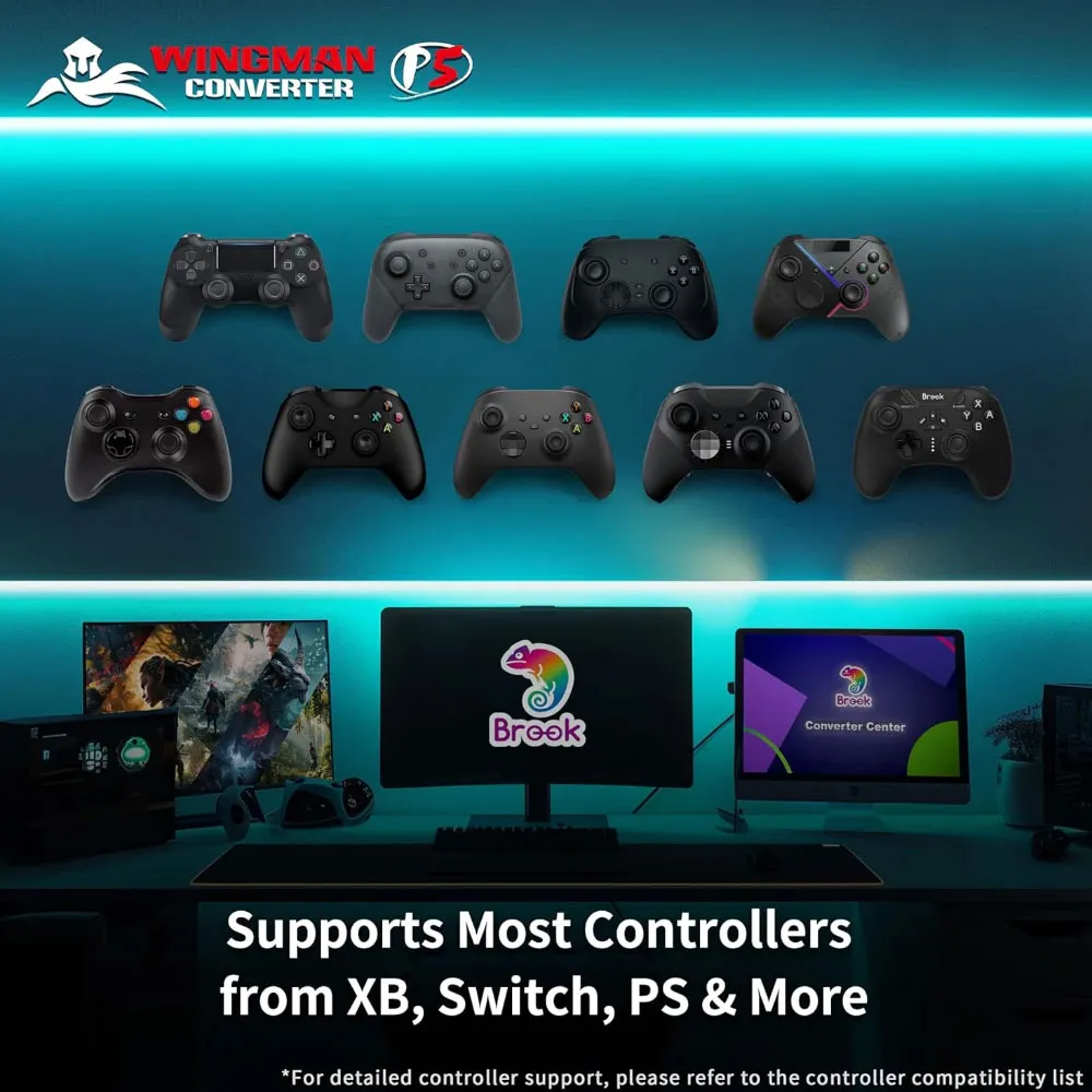 Brook Wingman P5 is a powerful plug-and-play converter that lets your favourite wired and wireless controllers work seamlessly across PS5, PS4, and PC with full vibration and motion support. Built with the latest chip and advanced customisation via Brook Converter Centre, it delivers wireless freedom, wide controller compatibility, and reliable performance for every style of gamer.