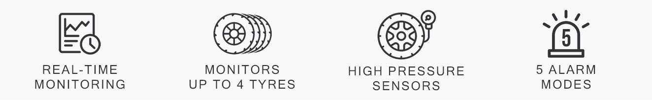 • High-Pressure Alarm: Triggers if a tyre pressure exceeds a safe, pre-set threshold, which can be caused by heat build-up or overinflation.