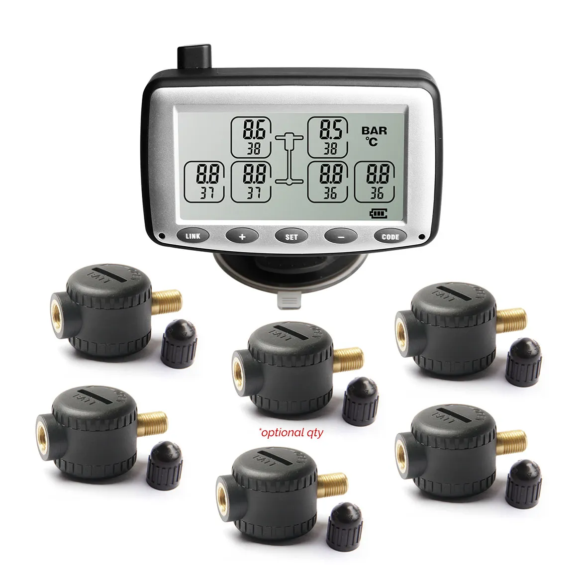 • Provides real-time pressure and temperature for each tyre, which prevents dangerous blowouts, improves fuel efficiency, extends tyre life through even wear. Monitor your tyre pressure accurately from 0 to 189 PSI and temperature data within ±1.5 PSI or ±3°F accuracy.