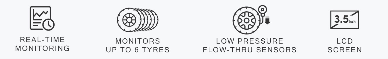 • Low-Pressure Alarm: Alerts the driver when tyre pressure drops below a minimum safe level, which is a key safety feature to prevent underinflation, potential tyre damage, and accidents.