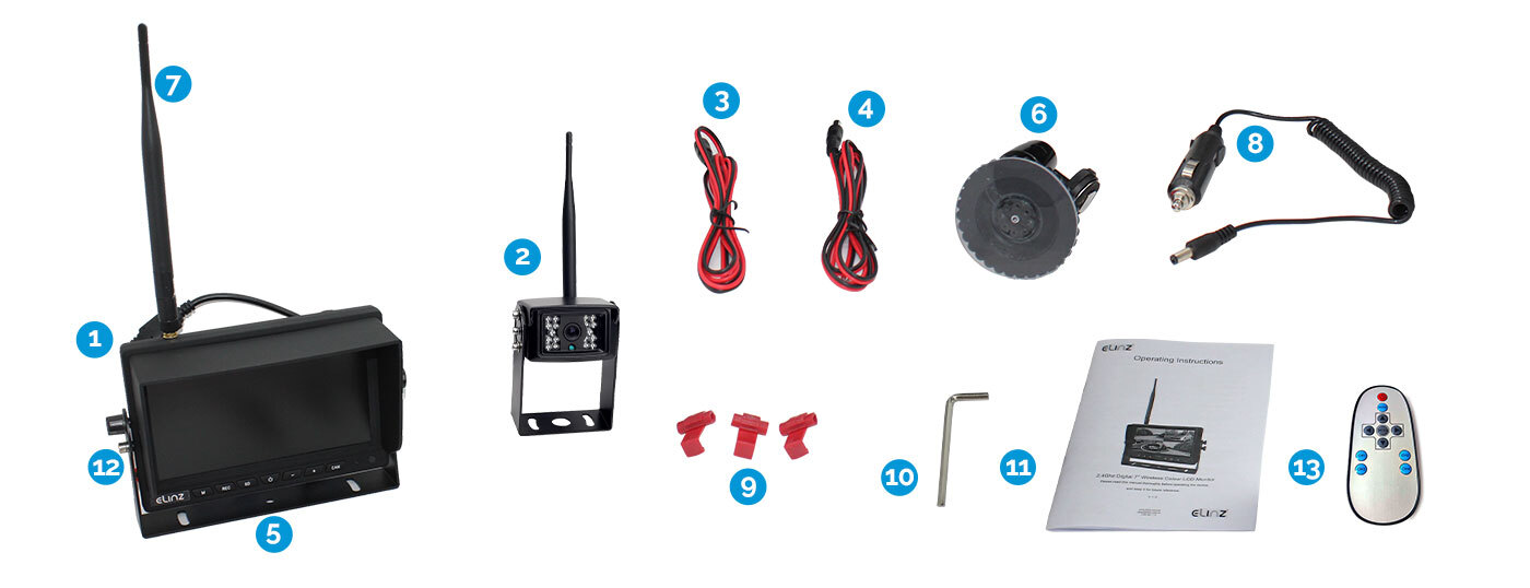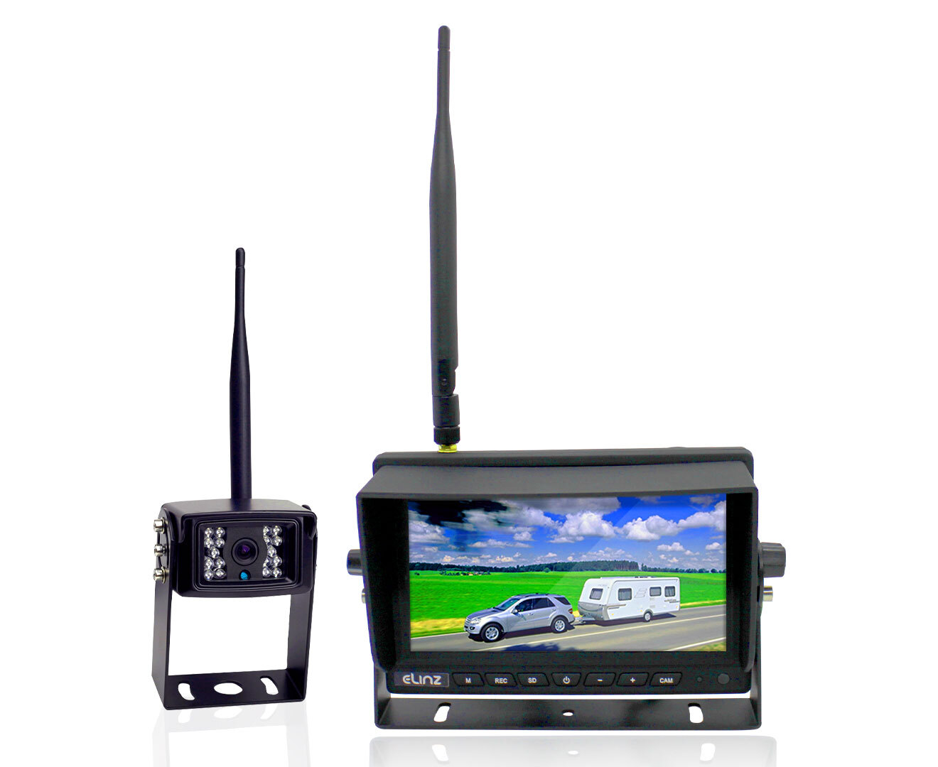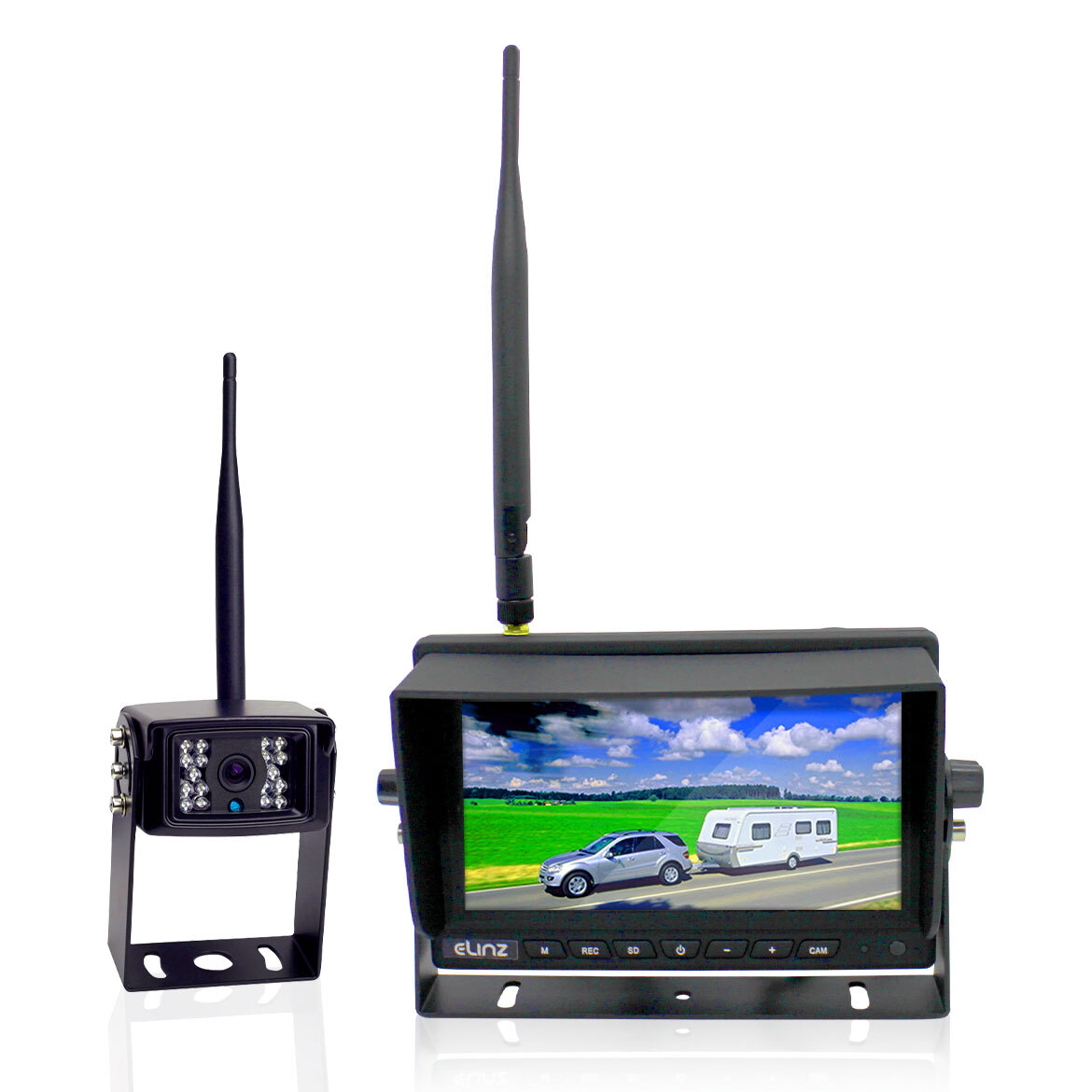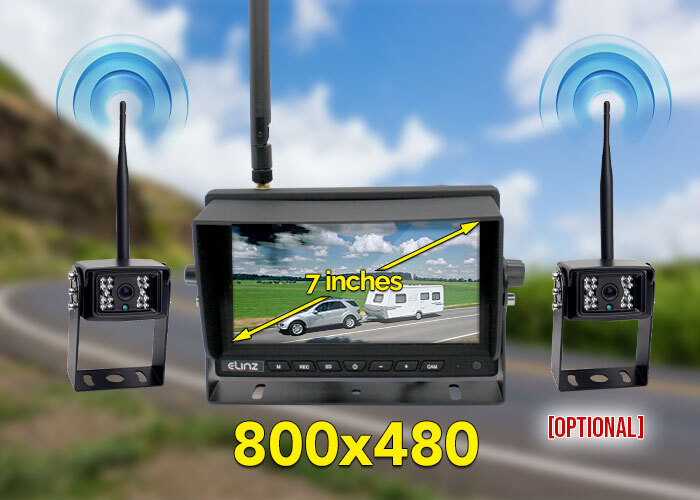 Elinz Caravan Two Camera 4PIN System 7" Monitor HD 12V/24V Reversing CCD Camera Kit