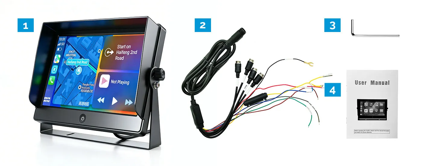 • Offers 1, 2, 3, or 4-way split screen viewing modes, allowing drivers to monitor multiple cameras for safer driving.