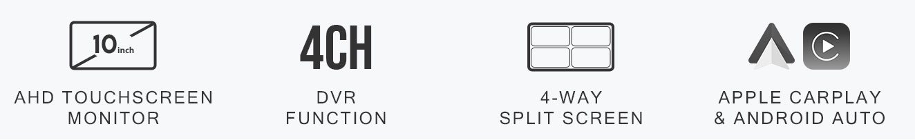 Elinz 10" Quadscreen AHD Touchscreen 4CH DVR Carplay Monitor