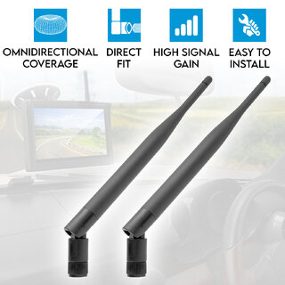 The 2x Aerial Elinz WiFi Digital Wireless 2.4 GHz Frequency 5dBi Antenna RP SMA Male Connector enhances wireless connectivity with its exceptional features. It offers excellent performance and durability with its omnidirectional coverage. Specifically designed as a direct fit replacement for Elinz wireless monitors and cameras, it is compatible with models M72CH, M7DG, M9, M92CH, M5DG, RVDWRL, and RVDWT.