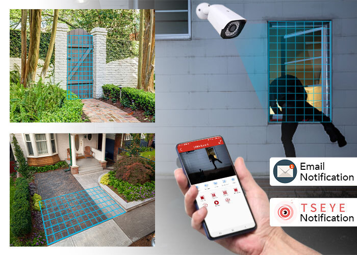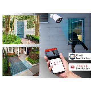 High Definition 4CH DVR CCTV camera system with 2x outdoor bullet cameras. This surveillance system can be accessed and controlled remotely via mobile app through TSEye (Android and iOS) and on Desktop/MacOS. It supports night vision range of up to 25 meters with 36pcs IR LED, IR-Cut filter and 3.6mm lens.