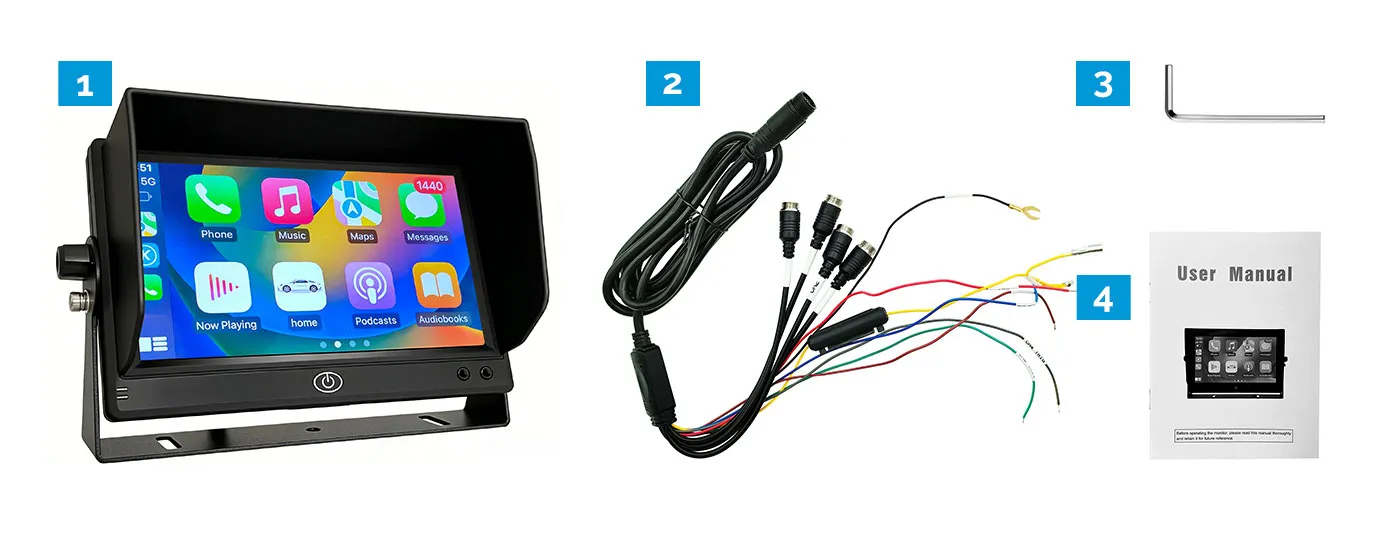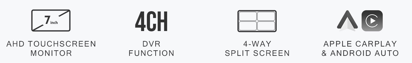 Elinz 7" Quadscreen AHD Touchscreen 4CH DVR Carplay Monitor
