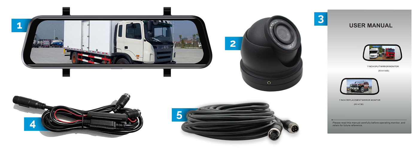 Elinz K Series 9.6" Full Screen Display Replacement Mirror Monitor Dome AHD 1080P Reversing Camera 10M Cable