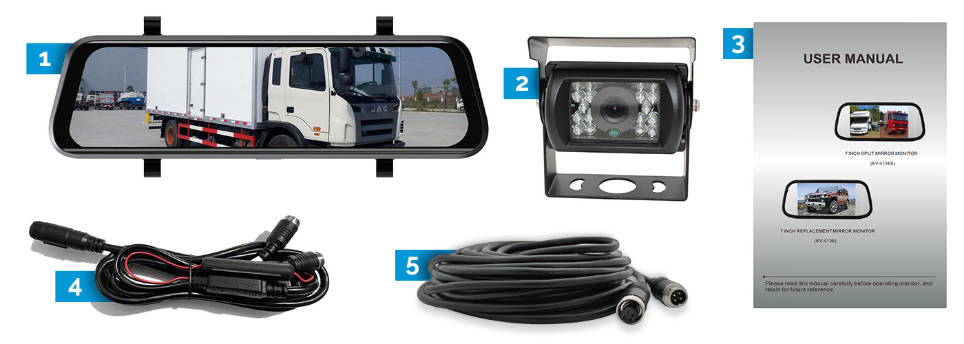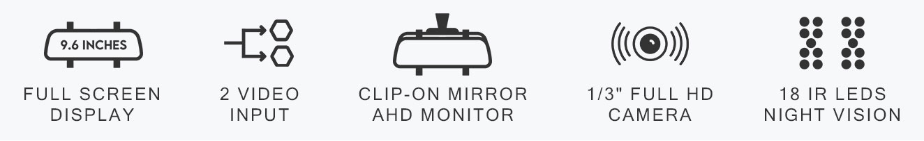Elinz K Series 9.6" Full Screen Display Clip-on Mirror Monitor Heavy Duty AHD 1080P Reversing Camera 10M Cable