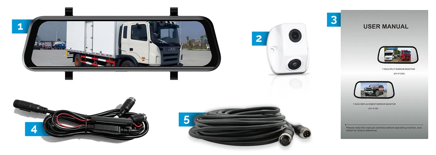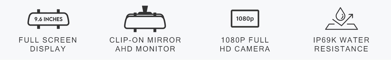 • 9.6 Inch Full Display Mirror Monitor - High-resolution 320×1280 screen delivers detailed and clear images for enhanced rear and reverse viewing.