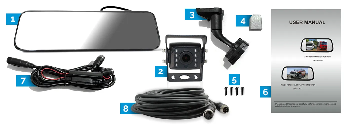 Elinz K Series 9.6" Full Screen Display Replacement Mirror Monitor Small Heavy Duty AHD 1080P Reversing Camera 10M Cable