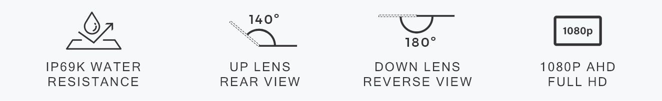 The Elinz K Series Dual Lens AHD 1080P Camera delivers full HD clarity with two lenses providing wide rear and reverse views for complete vehicle coverage. Built with an IP69K waterproof metal housing and 24/7 reliability, it ensures clear, dependable monitoring in any environment.