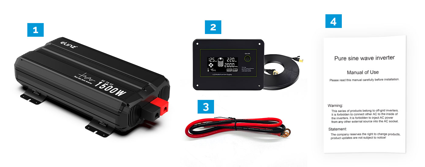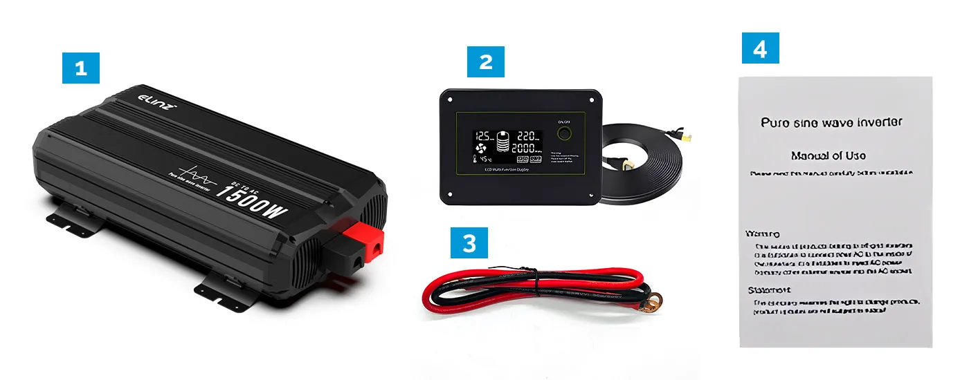 Elinz Pure Sine Wave Inverter 1500W 12V with Remote Control