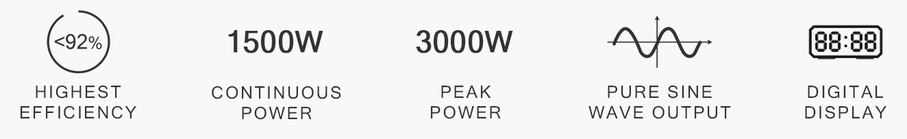 • High Power Capacity - Supports 1500W continuous power and 3000W surge power for heavy and inductive loads.