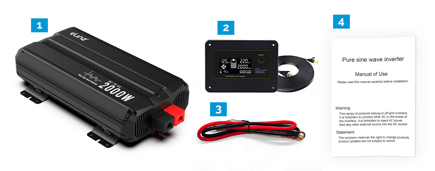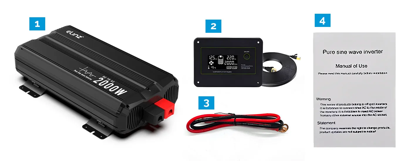 Elinz Pure Sine Wave Inverter 2000W 12V with Remote Control