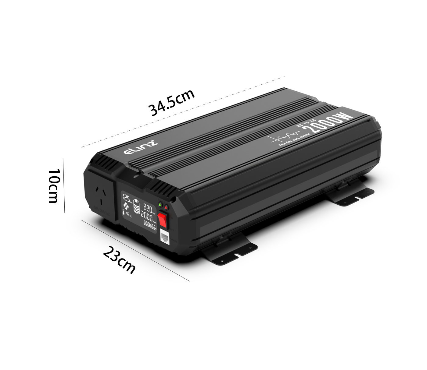 Experience reliable and efficient power conversion with the Elinz Pure Sine Wave Inverter 2000W 24V with Remote Control, delivering clean, stable energy ideal for sensitive electronics. Designed for convenience and performance, it features a digital display, remote control access, and multiple safety protections for worry-free operation.