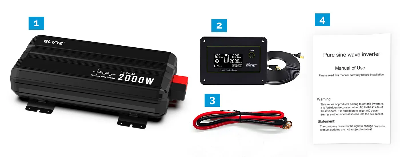Elinz Pure Sine Wave Inverter 2000W 24V with Remote Control