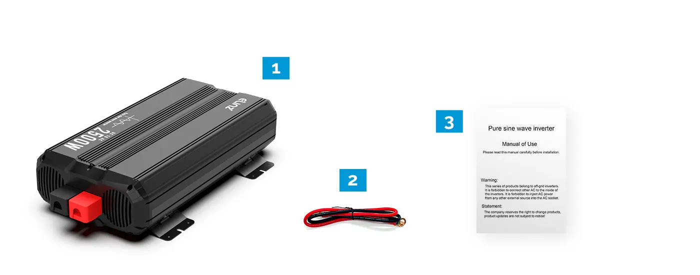 Elinz Pure Sine Wave Inverter 2500W 24V What's Included