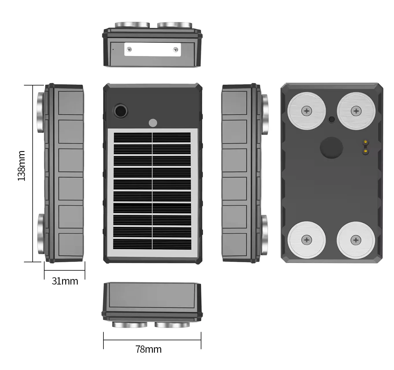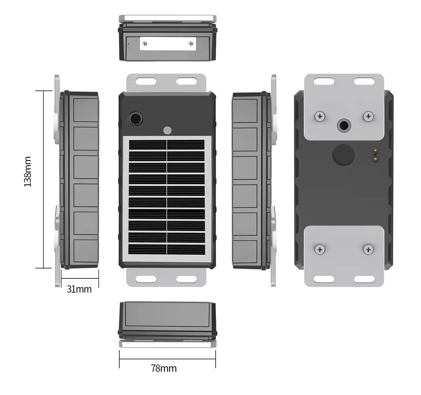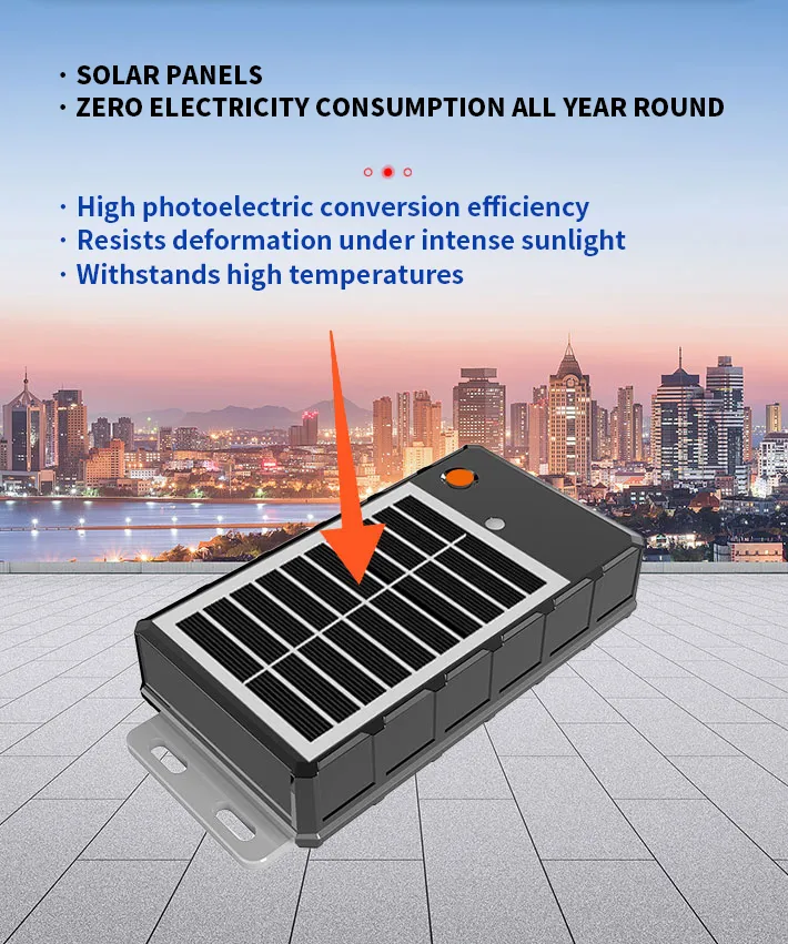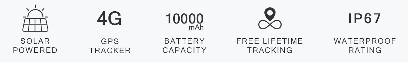 • Solar-Powered - Uses solar energy to keep the battery charged for continuos, eco-friendly tracking.