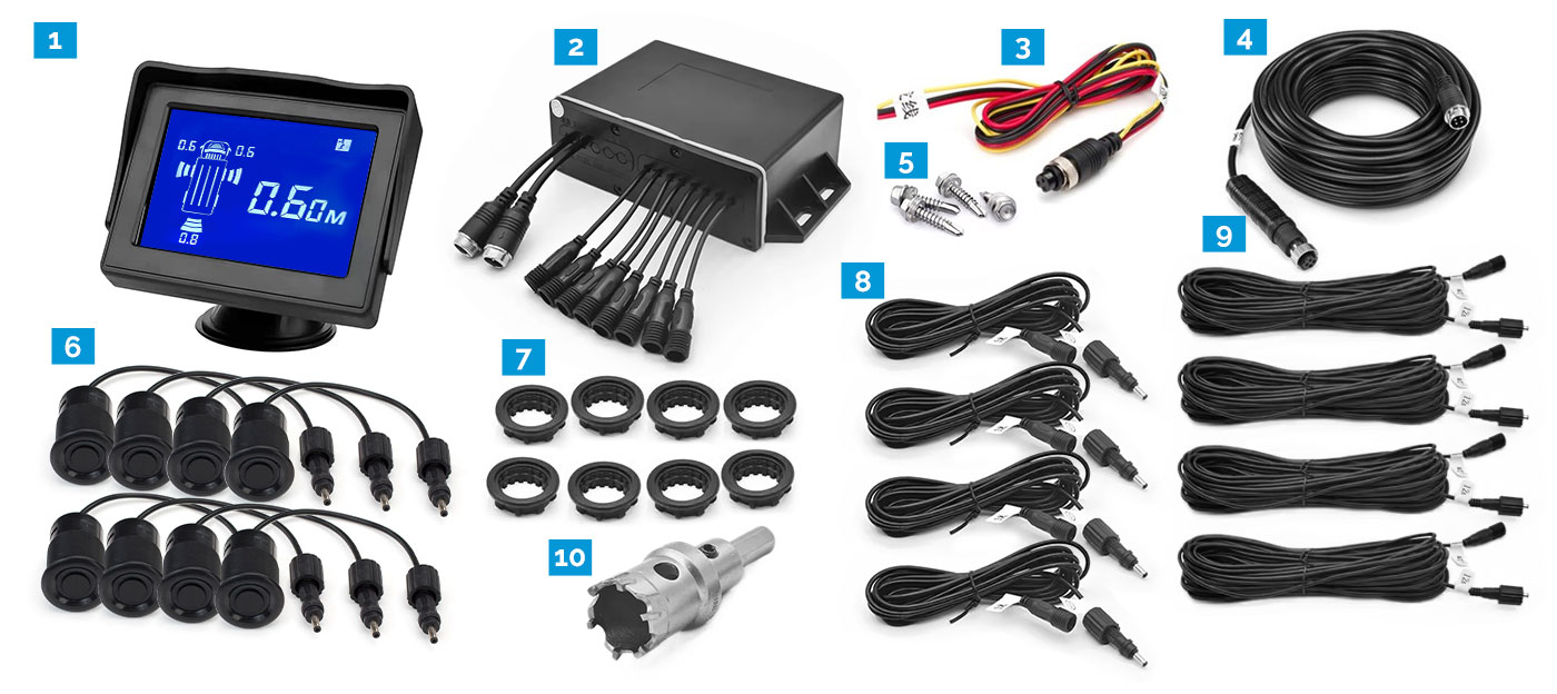 It comes with a 10-meter 4PIN cable to connect the control box to the 3.5" monitor. For longer vehicles, you can purchase extra 10-meter, and 20-meter cables separately.