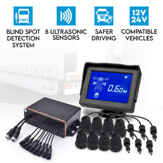 Elinz Blind Spot Detection System for Heavy Commercial Vehicles 8 Ultrasonic Sensors Driving Parking Reverse Backup Kit