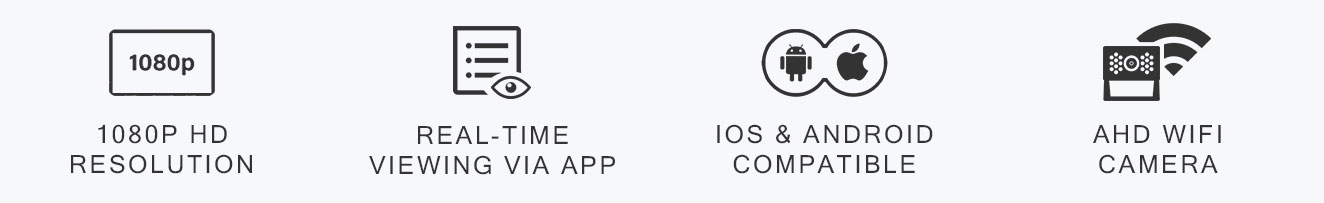 • WiFi Connection with Real-Time Viewing via APP - With built-in WiFi module that allows direct connection to the camera via the App on smartphones or tablet for real-time video streaming with low latency. No additional monitor or complex video cable installation needed.
