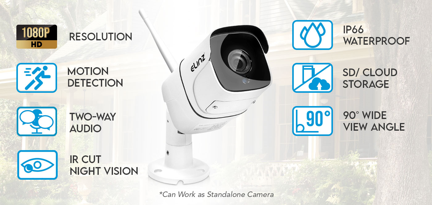 Wireless security camera 1080P that can record smooth crystal-clear videos. This security camera has a built-in speaker and microphone. This camera supports Onvif, this means that this security camera is compatible and can be connected to other NVR platform, so if you have existing CCTV or planning to install one, this security camera will work seamlessly with them.