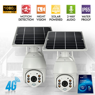 2x Elinz Wireless Solar Security 4G IP 1080P PTZ Camera CCTV Waterproof Built-in Battery ALDI Sim