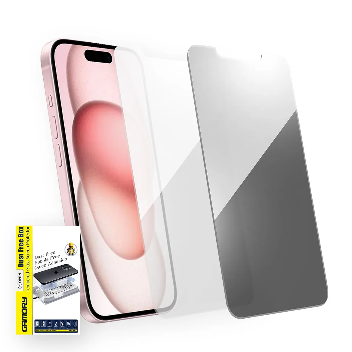 Protect your iPhone 15 with the Gamory Tempered Glass Screen Protector, designed for effortless, bubble-free installation and perfect alignment every time. Made with 9H High Alumina Glass and advanced coatings, it offers superior scratch resistance, fingerprint protection, and your choice of HD Clear or Privacy viewing options.