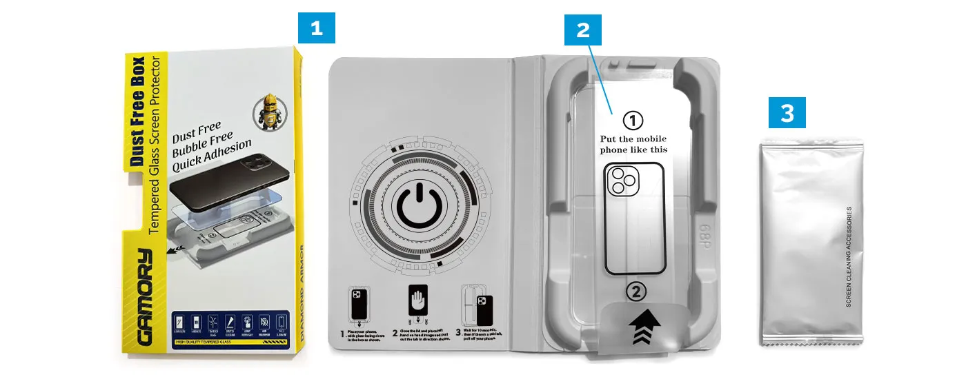 3. 1x Cleaning Kit (1* alcohol wipe + 1* dry cloth + 1* dust removing sticker)