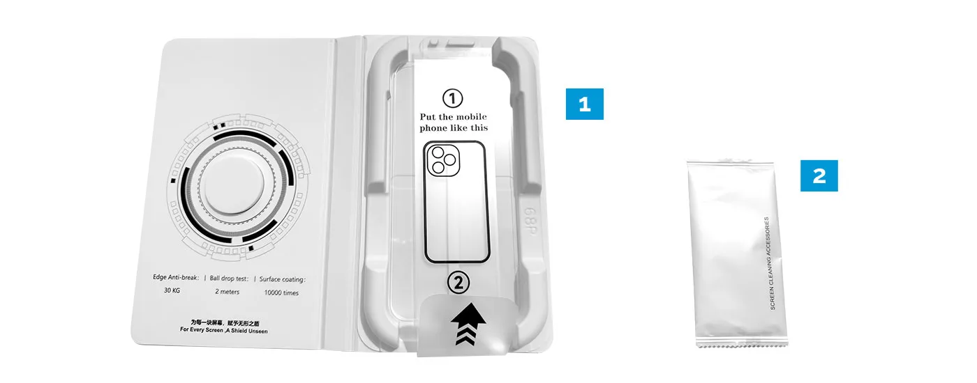 1. 1x Easy Install Box and 1x Screen Protector (Varies from option selected - HD Clear or Privacy Screen)