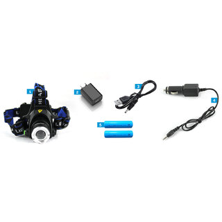 Headlamp, Charging Cable, USB Adapter, Car Charger, 18650 2000mAh Batteries