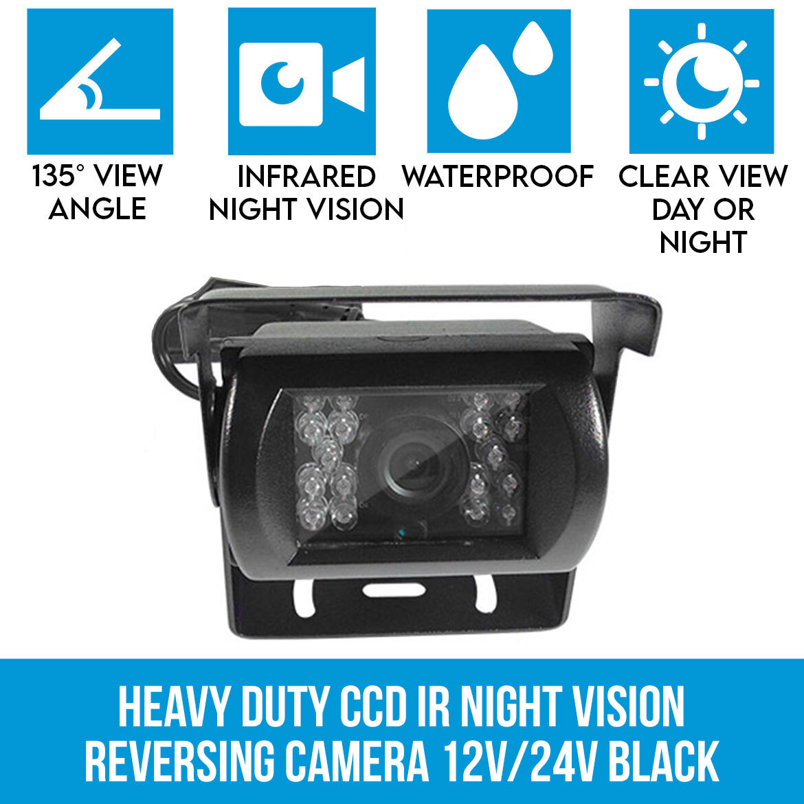 - Suitable for use with trucks/ caravans/ cars etc. Thanks to this heavy duty CCD crystal clear 12/24-volt applicable reverse camera