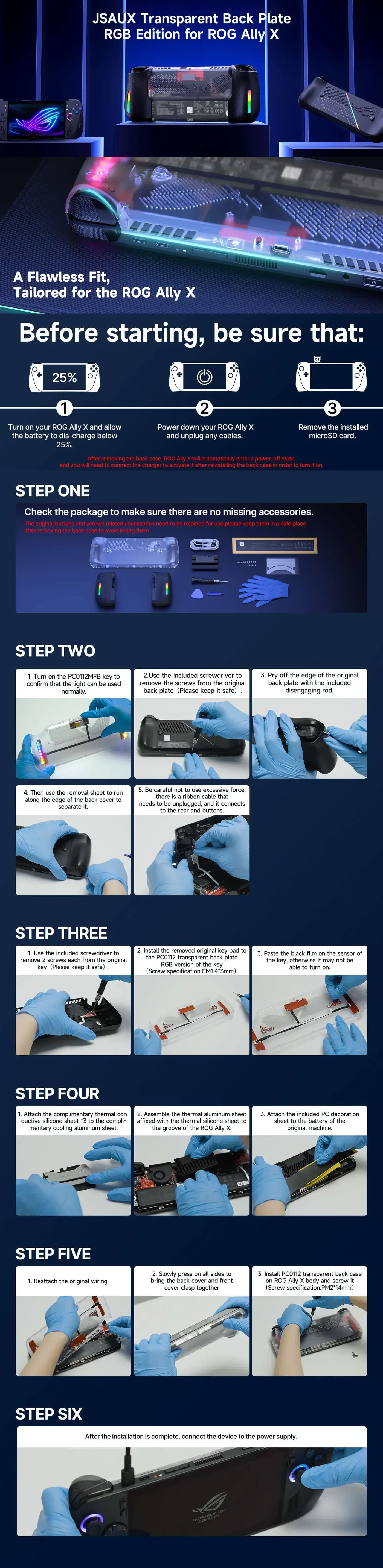 • Use the JSAUX transparent back plate to reveal the back of the ROG Ally and see the elements of the console's internal components, allowing you to get involved in the design.