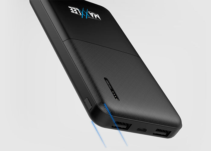 Maxxlee 10000mah Power bank with slim design and Grade A Li-Polymer battery. With it's dual USB port you can charge 2 devices simultaneuously. This 10000mah power bank is safe to use with it's multi-protection feature.