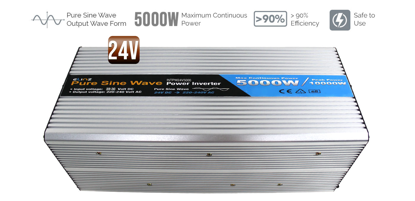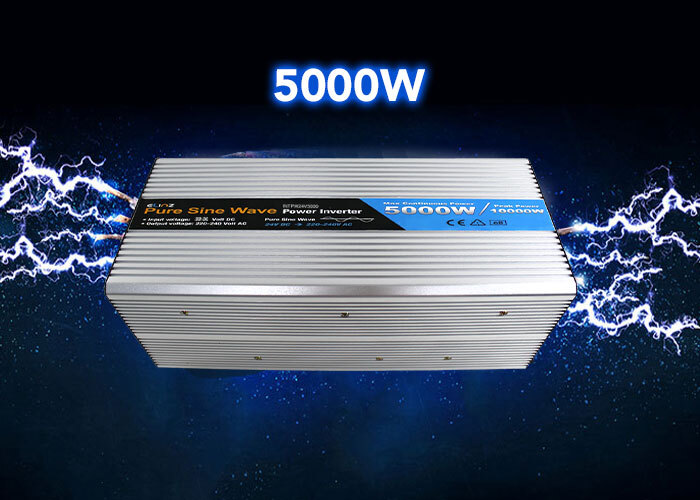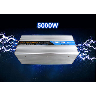 Pure sine wave power inverter with peak power of 10000W and maximum continuous power of 5000W. The quiet running, robust, and reliable power converter. The Pure Sine Wave allows you to enjoy a clean and powerful AC source completely free from signal interference. You can run high powered devices such as computers and TVs from your car, four wheel drive (4WD), truck, caravan, and boat battery.