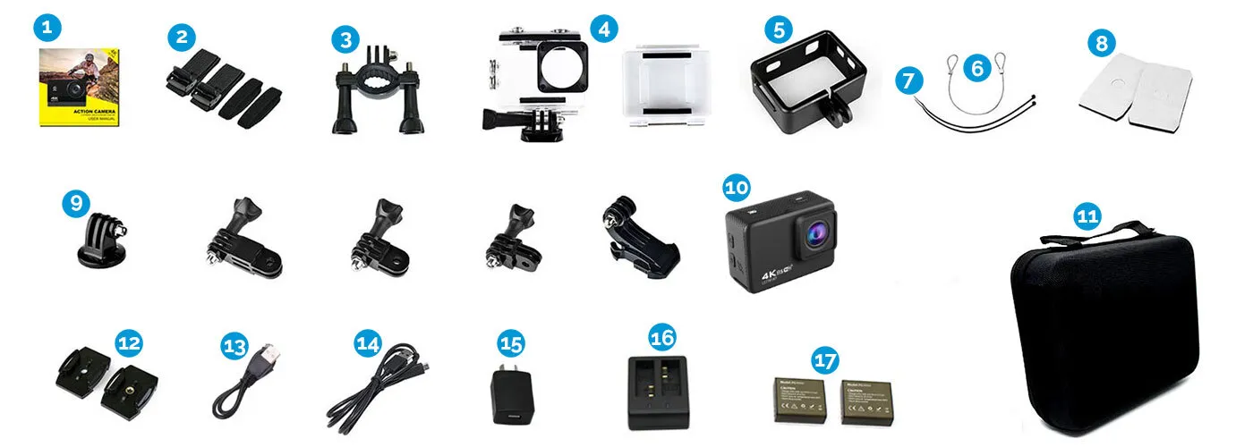 4K UHD Sports action camera can capture stunning videos and photos in ultra high-resolution and with high frame rate up to 60FPS that delivers distinctly smooth video.